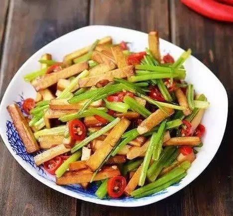 食材:豆腐干150克、芹菜75克、胡萝卜10克、盐6克、味精5克、花椒油10克、十三香5克。