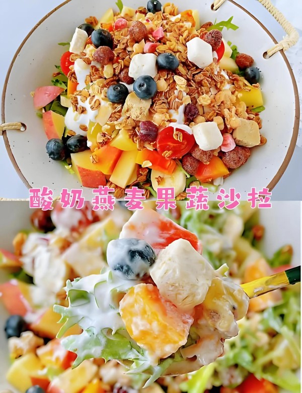 **营养分析**:燕麦富含膳食纤维,有助于消化,水果则提供丰富的维生素和矿物质,搭配酸奶,既美味又营养,适合老年人作为早餐或点心。