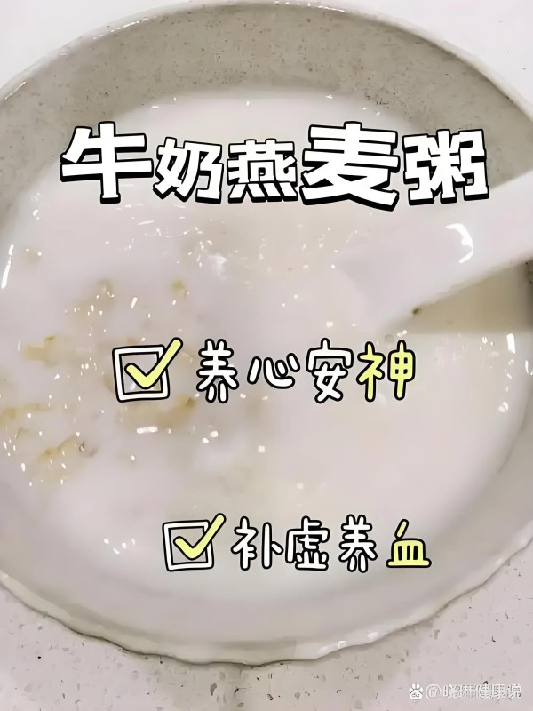 **营养分析**:燕麦粥富含膳食纤维,能够帮助消化,同时搭配牛奶和坚果,增加了蛋白质和健康脂肪的摄入,适合作为早餐或夜宵。