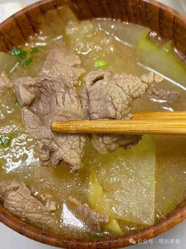1、将冬瓜去皮,切成薄片备用;牛肉切片,加入盐、鸡精、胡椒粉、生抽和干淀粉抓拌上劲。