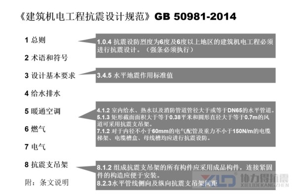 注:该条文定义了建筑物中所有的机电专业管线均需进行抗震设计。