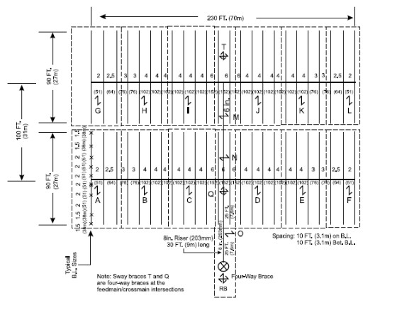 注:电气配管的抗震支架设计范围为内径不小于60mm,与燃气、水管的设计范围不同。对桥架的抗震支架设计范围为大于15Kg/m。