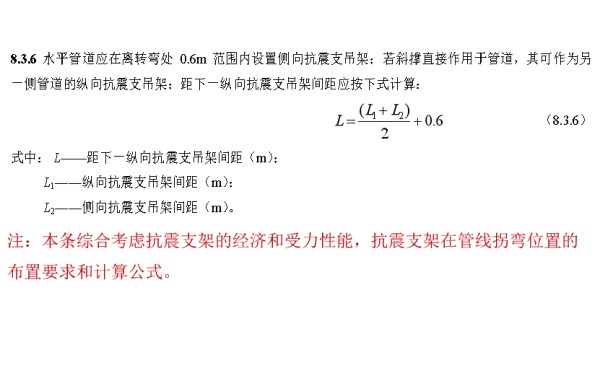 8.3.2 当两个侧向抗震支架间距超过最大设计间距时,应在中间增设侧向抗震支架。