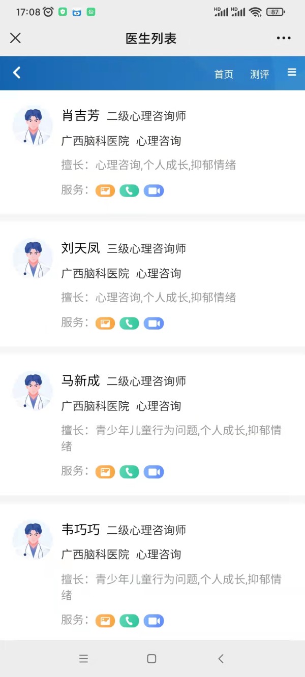 三、选择“在线咨询”功能,选择一位心理咨询师。
