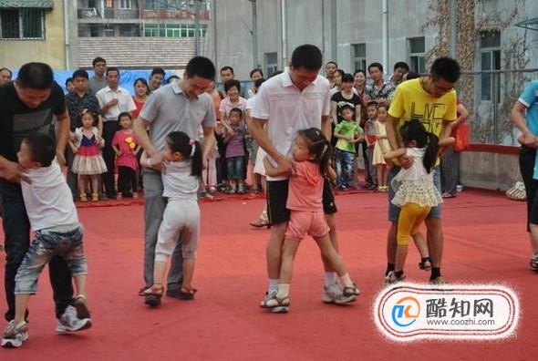 玩法:每个家庭由一位家长和一小朋友参加,小朋友双脚踩在家长的脚上,家长和小朋友手拉手,口令一发出,家长带着小朋友向前跑,小朋友双脚不能离开家长的脚哦,比比谁先到终点。