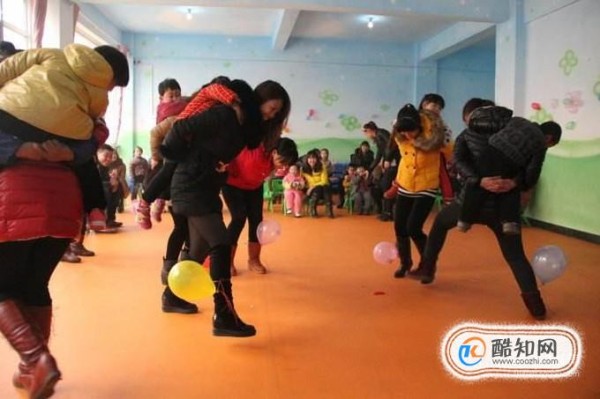 玩法:小朋友抱紧家长的脖子,背在家长的背上,家长双手着地做俯卧撑,看哪组家庭做的最多为胜。