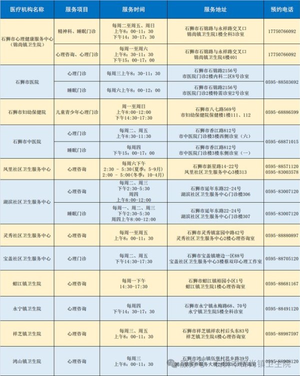 为确保服务触手可及,石狮市已铺设“市—镇—村”三级心理健康服务网络。目前,全市12家公立医疗机构均能提供相关服务。市民可根据自身需求,选择前往市级医院的心理门诊、睡眠门诊,或就近在乡镇卫生院(社区卫生服务中心)的心理咨询室获得帮助。