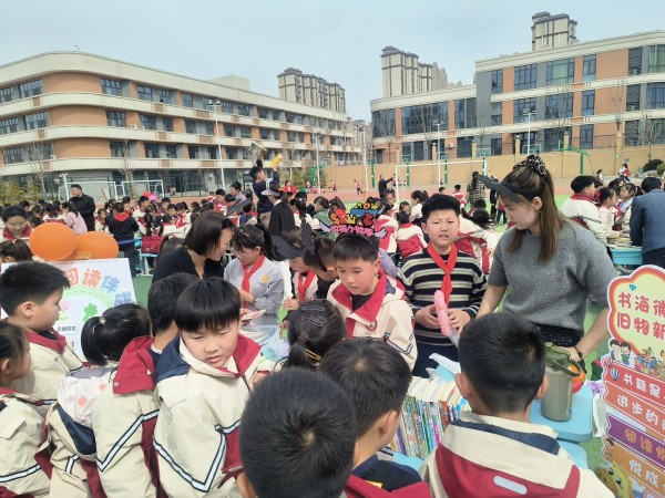 3月12日,巩义市嵩山路小学举办首届嵩园小书市活动。学生拿出家中闲置的图书到“市场”上进行交流,让图书真正流动起来,共同分享书籍带来的快乐。