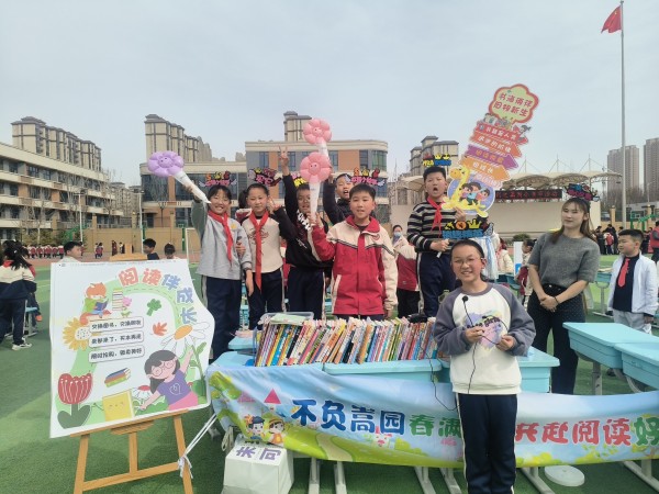 活动现场,琳琅满目的书籍整齐地摆放在各个摊位上,种类多样。学生们化身为小书商,通过创意展销、趣味互动等形式,热情地向同学们推荐自己的书籍。操场上讨价还价声、朗朗推荐声、惊喜欢呼声此起彼伏,为校园注入蓬勃书香活力。