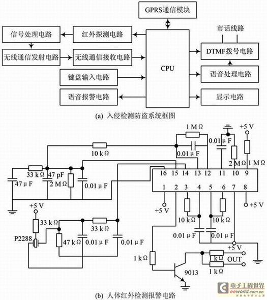 图4 入侵检测报警框图及电路