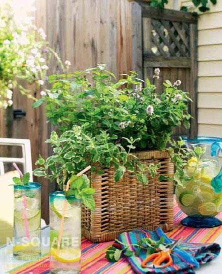 这包裹在香草清香的绿植是餐桌的很好搭档,绿油油的薄荷等植物不仅能带来视觉的享受,还可以随时摘下几片叶子佐餐调味,用来装饰饮料杯也是很好的创意!在你家的样板房设计配上这春意盎然的篮筐,不能单单有惬意来形容了。