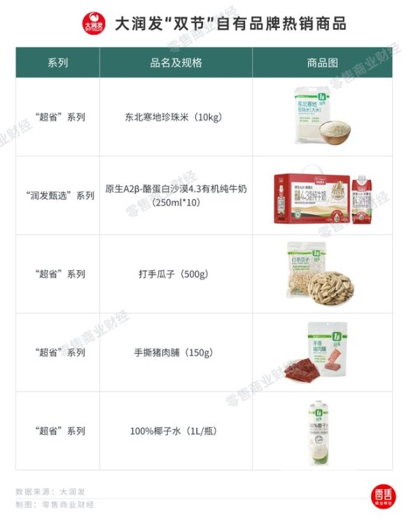 部分商品表现亮眼:“润发甄选”系列沙漠有机奶凭借4.3g/100mL高乳蛋白的差异化优势持续热销,“超省”系列的打手瓜子、手撕猪肉脯、100%椰子水及 东北寒地珍珠米 ,亦稳居终端销售榜单前列,部分门店因需求旺盛需高频补货。