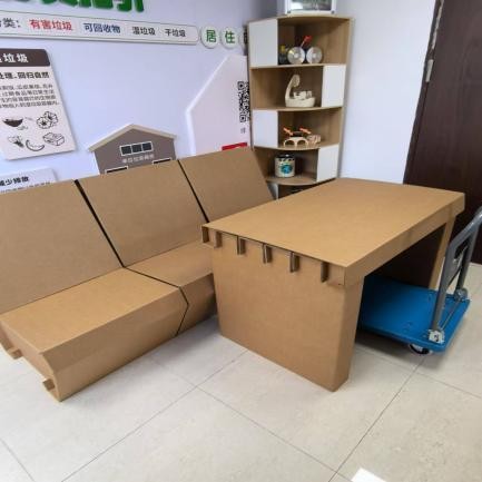 改造不仅关乎功能,更传递理念。在“沪尚回收”服务点中不仅可以看到利用再生材料搭建的桌椅,还设有展示废旧物资再利用的手工艺品展示架,吸引孩子们驻足。服务点负责人介绍,服务点还贴心设置了便民药箱和休息区,处处彰显绿色低碳理念。