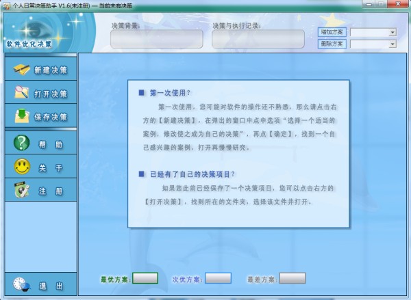 专门帮助用户在日常生活中做决策。这套软件根据决策学的知识,提出了一整套有系统有规范、能操作能见效的方