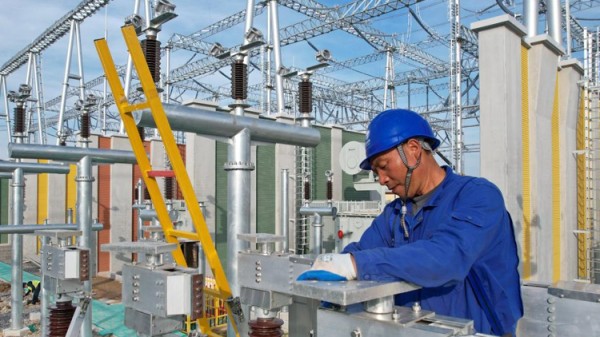 10月14日,工人在位于河北省宁晋县境内的国网邢台北500千伏超高压变电站建设工地施工。目前,位于河北省宁晋县境内的国网邢台北500千伏超高压变电站建设正在按照节点要求稳步推进。