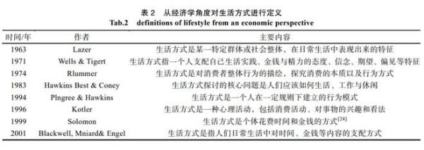 Tab.2definitionsoflifestylefromaneconomicperspective