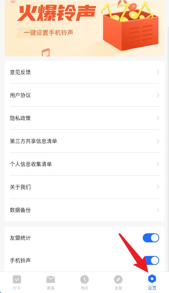 5、在“设置”页面可查看用户协议、隐私政策及信息清单,并支持数据备份和个性功能开关。