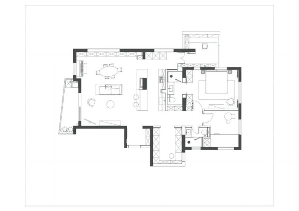 全开放式的设计让空间功能互相叠加,营造出更舒适的空间尺度和视觉体验。