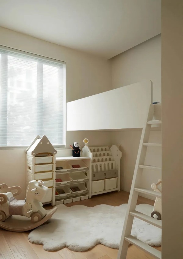 上下层设计的儿童房,充分利用每一寸空间,睡眠区与娱乐区兼备,选择符合孩子身高的矮柜,方便孩子自己取放绘本和玩具。