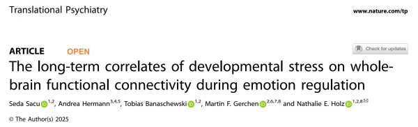 Sacu, S., Hermann, A., Banaschewski, T., Gerchen, M. F., & Holz, N. E. (2025). The long-term correlates of developmental stress on whole-brain functional connectivity during emotion regulation. *Translational Psychiatry*, *15*(1), 152. https://doi.org/10.1038/s41398-025-03374-8