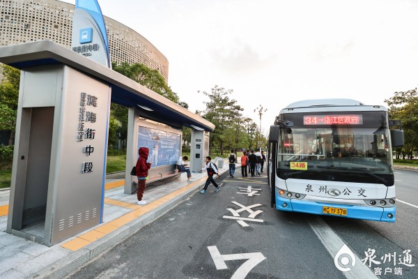 盲道一直延伸到公交站台上 (林劲峰 摄)