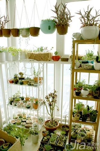 太贪心想一次性在阳台花园里种出所有你喜欢的植物?那就多准备几只花盆架吧,密密地摆上新生的嫩芽们,连围栏边沿和上层空间都利用上,看着那么多可爱小植物们紧凑地挤在一起,能自然想象出它们长大后阳台一片绿意盎然的模样。