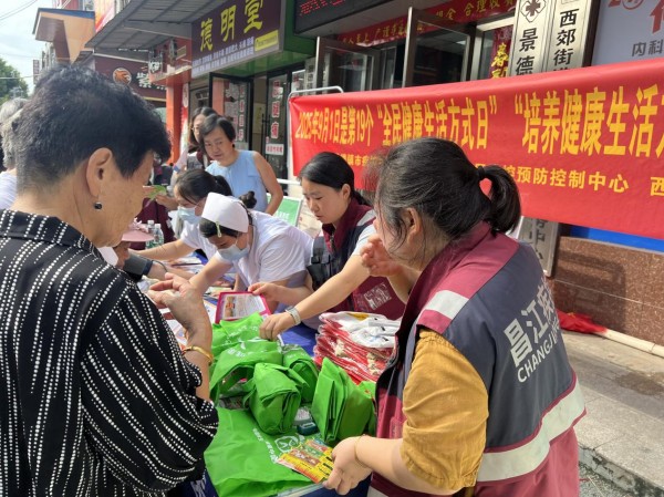 每年9月是全民健康生活方式月,2025年9月1日是第19个“全民健康方式生活日”。为贯彻落实《健康中国行动(2019-2030年)》、《健康体重管理行动》等相关要求,9月1日上午,景德镇市疾控中、昌江区疾控中心、西郊北片社区卫生服务中心联合在西郊北片社区开展现场宣传活动。