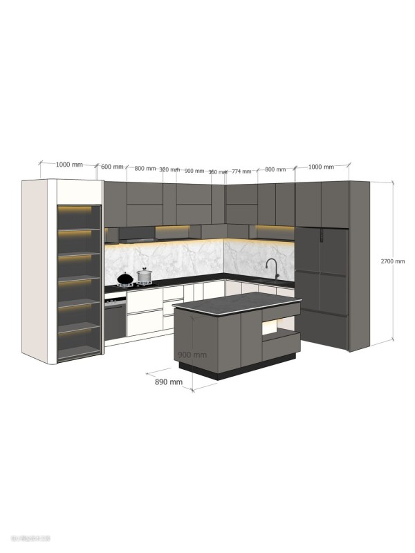 L型橱柜+中央岛台非常适合大户型厨房设计,超长操作台满足大家庭需求,合理布局更加便捷,侧边加入酒柜,分区收纳给你意想不到的惊喜!