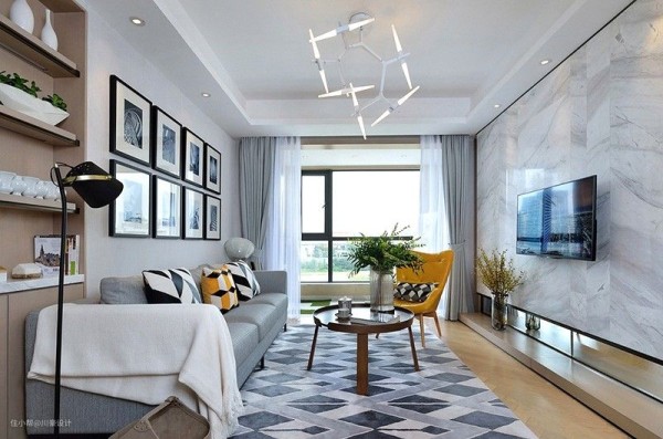 大型主灯,提供了亮度的同时,还特别的耗电。筒灯相较于主灯要便宜得多,可以采用无主灯设计,筒灯+灯带+落地灯组合,让整个空间照明更均匀,家里各个区域看起来更有氛围和层次感。