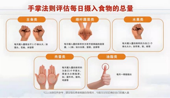 “饮食手掌法则”是一种简单直观的方法来估算日常饮食中的食物摄入量,尤其适合糖尿病患者、糖尿病前期人群或希望控制体重的人群,在实际应用中还需要根据自己的具体情况进行调整。