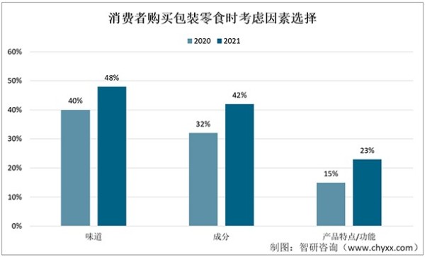 随着大众消费水平的提升以及对健康的日益重视,根据益普索对零食消费者2020年与2021年对调研数据对比,消费者对于零食的健康性关注度越来越高。特别是疫情发生以来,消费者开始更加注重休闲零食对健康的影响。同时低糖低卡、优质的原料、健康的加工工艺、健康的功能性等要求,推动着零食产业健康化趋势发展。