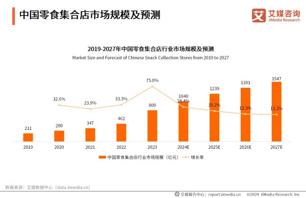 市场规模:预计2027年中国零食集合店市场规模有望达到1547亿元