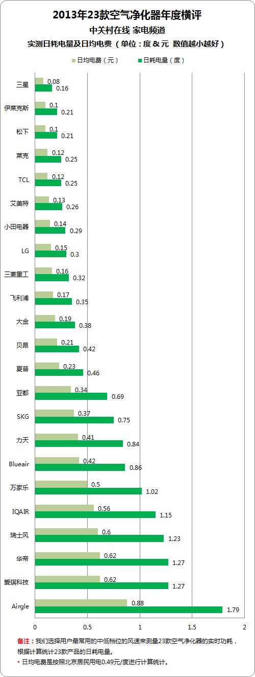 顺便要说一下,别看空净开起来动静很大,但其实跑一天也花不了你几个钱,一般每天每台的电费肯定低于1元。以下是几款机器大概的电费。