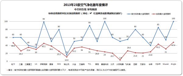 每台空气净化机都有设计使用面积,而且这个设计使用面积都是按照目前公寓的一般层高2.6米来算的,如果你家是跃层或者别墅这个实际使用面积肯定就要加倍了。而即使是按照2.6米层高,大部分的空净标签上所标准的适用面积,还是虚高的。请看下表: