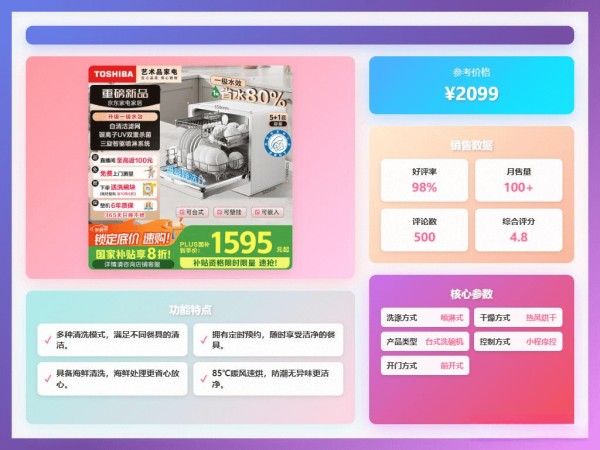 东芝在家电领域深耕多年,一直致力于提供高品质的厨房电器。这款洗碗机延续了东芝一贯的精工品质,同时在功能和设计上也做了不少创新,力求为用户带来更便捷、健康的洗碗体验。