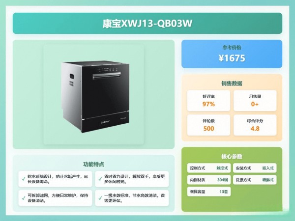 康宝专注于厨房电器多年,一直致力于为中国家庭提供更健康、更便捷的厨房生活体验。它家的洗碗机在除菌和洗净方面表现都不错,也积累了良好的口碑。