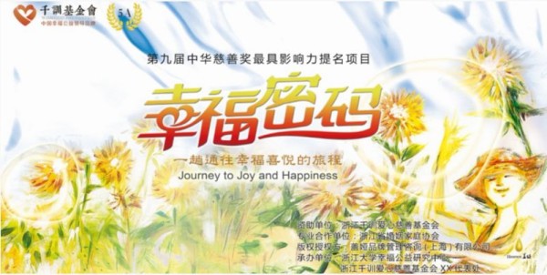“幸福密码”是5A级基金会浙江千训爱心慈善基金会资助的幸福体验公益活动,荣获中华慈善奖最具影响力项目提名奖。项目针对企业家、教match师、大学生、公益组织人员提供为期2天的活动。通过体验与互动,帮助活动对象打开迎回幸福的大门,提升幸福感。