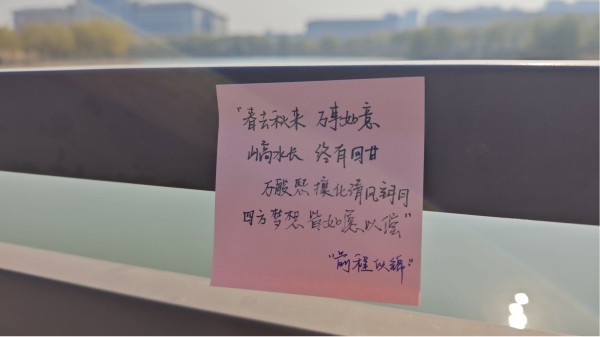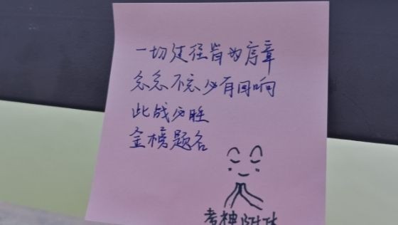 还有同学主动创造“小确幸”,了解到近期考研同学压力比较大,来自人工智能专升本的班长团支书组成心愿贴贴团,给即将考研的同学送去温暖,在校园里随处可见的地方写上便利贴,鼓励他们以良好的心态应对考研的挑战。