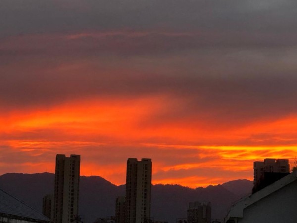 感到幸福的时刻有很多,最喜欢的还是傍晚从教室里出来时,欣赏各种各样不同的晚霞。连绵的青山在黄昏下朦胧了轮廓,烧的赤红的火烧云,粉紫色的云朵……