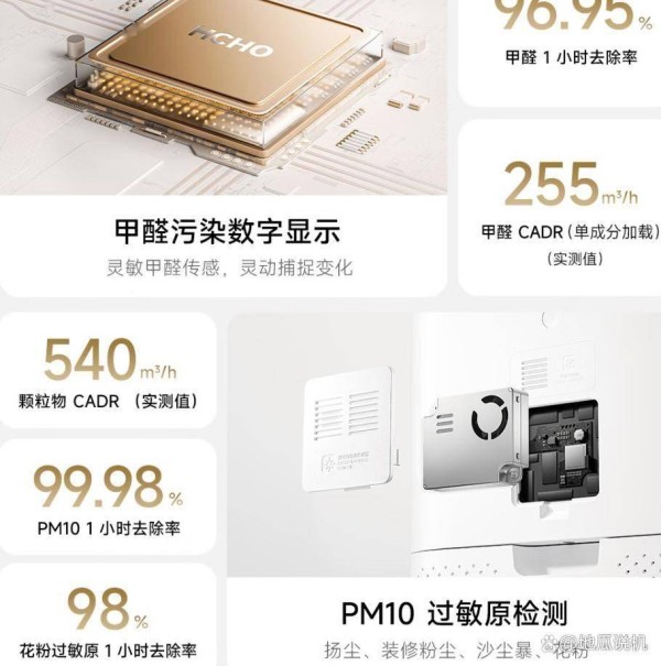 -除甲醛黑科技:搭载“三步强力除醛技术”(吸附→分解→光触媒消杀),甲醛CADR值高达255m³/h,去除率96.95%,专为新装修家庭设计。