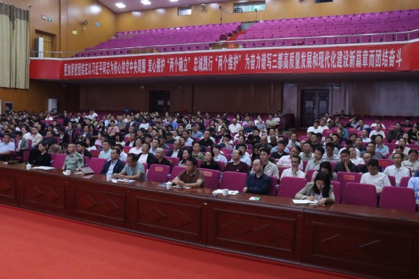 县四家班子领导,县法院院长、县检察院检察长;县直部门单位领导干部、各镇(街道)主要负责同志等在县人民大会堂县级主会场参加讲座。各镇(街道)中层以上领导干部在各分会场参加。