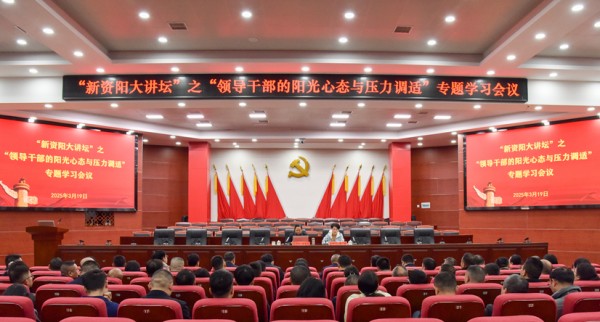 3月19日,新资阳大讲坛之“领导干部的阳光心态与压力调适”专题学习会议召开,中南大学二级教授、医学博士管茶香作专题辅导,区委副书记、区长黄瑛主持会议。全体在家区级领导,区人大、区政协委室主任以及各部门单位负责人参加。