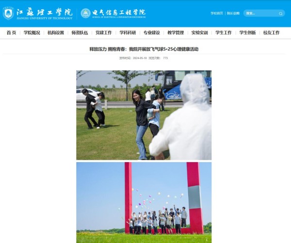 为了帮助学生们释放压力、舒缓情绪,拥抱属于他们的青春时光,2024年5月8日,江苏理工学院电气信息工程学院在上黄镇长荡湖湿地公园,开展了一场别开生面的“释放压力,拥抱青春”放飞气球5·25心理健康活动。此次活动不仅为学生们提供了一个释放内心压力、表达自我情感的舞台,更是一次心灵的洗礼和青春的狂欢,也让学生们深刻体验到了心理健康对于个人成长的重要性。