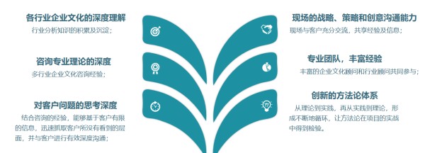 通用咨询国际企业文化建设咨询以战略和经营为核心,帮助客户建立和实施有效的企业文化体系建设、企业文化传播策划、落地实施、培训和评估等服务。