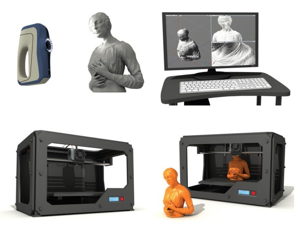 修复这类文物的流程可能既棘手又耗时,但3D技术的出现改变了这一局面。只要将不同的修复材料和技术应用在塑胶复制品上,修复师便能借此评估出最适合真品的修复方法。数字化重建工作的第一阶段为扫描原作,3D扫描仪会以激光照射真品,并接收反射的激光。配有感应器的扫描仪能搜集雕塑品的尺寸和形状数据,就像给雕塑做了一个精确的“三维模型”。接着便将该数据输入电脑辅助设计(CAD)软件中,经处理后,便能生成打印模板。一旦配置完成,就能将雕塑的数字复制模板传至打印机,一件精美的复制品便诞生了。