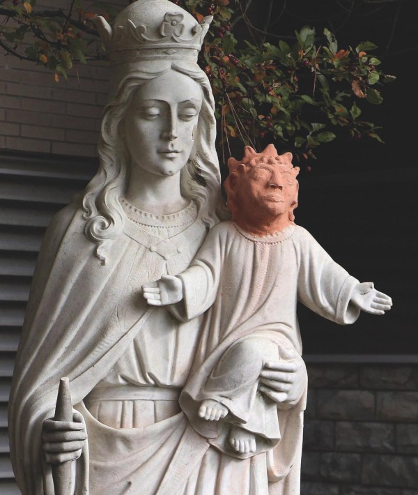 加拿大一座圣母玛利亚和婴儿耶稣的雕像在遭到蓄意破坏后,有位艺术家以赤陶土帮耶稣雕塑了一颗新头。好在原本的头被送回,让雕像得以复原。这一事件虽然最终有了一个相对圆满的结局,但也反映出在艺术品修复过程中可能出现的各种意外情况。