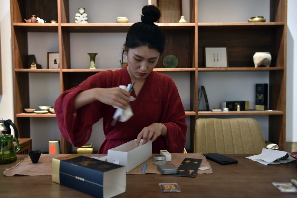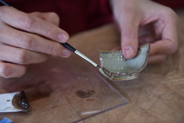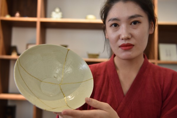 “后来,在我的坚持下,父母也慢慢的接受了我,开始支持我做金缮修复。”陈画介绍说,做金缮修复一般300元起价,同时根据要修复器物的难易程度定价,但是要让客户接受这个技艺是一个非常难的过程,一提到金缮修复,人们就会想到扒巴子(锔瓷),其实锔瓷和金缮是两种完全不同的工艺。图为陈画正在为客户修复的瓷碗,因为自己不满意,她反复进行了多次修复,直到满意为止。