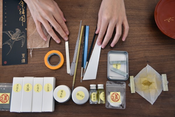 就在前几天,吉林长春的一个女孩,自己不远千里开车来到日照,找到陈画修复一个挂件饰品,让她非常感动。“其实这几年,有很多朋友来找我修复不小心摔碎的物件,把生活中的不顺利归于物件的破碎,有时候东西修好了,能真正的感受到他们内心的欢喜,我也就变得释然了。”陈画说。图为陈画做金缮修复使用的工具和材料。