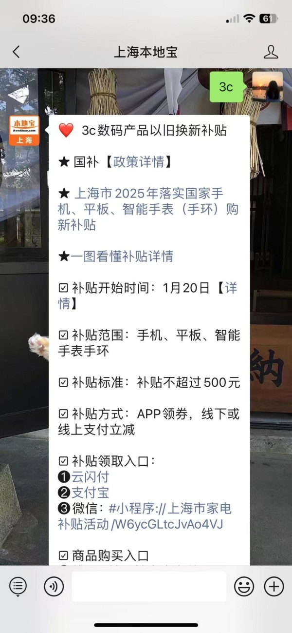 温馨提示:微信搜索公众号【上海本地宝】,关注后在对话框回复【3C】即可查看2025上海手机3C数码产品补贴最新消息,具体的补贴时间/标准、领取入口/流程、活动门店查询方式持续更新中。