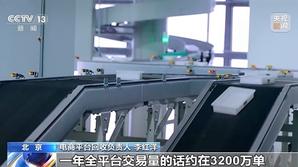 电商平台回收负责人 李红洋:回收的产品有95%以上进入了二次销售。我们每天能处理8万多台二手手机产品,一年全平台交易量的话是约在3200万单。